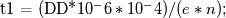 | + | <br /><latex>t1 = (DD*10^-6* 10^-4)/(e * n);</latex> | ||