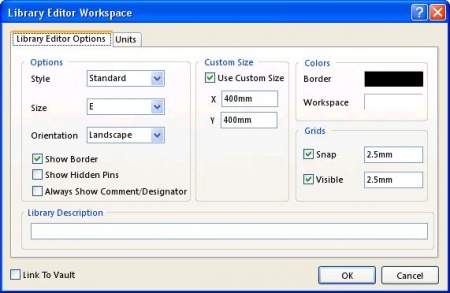 | − | + | Прежде чем начинать проектировать печатную плату, необходимо иметь все используемые на схеме элементы. Создадим новую интегрированную библиотеку элементов Optoelectronics, в которой будут находиться свето- и фотодиоды. УГО будем рисовать в соответствии с ГОСТ 2.703-73 ЕСКД. Шаг сетки в соответствии с ГОСТ устанавливается кратным 2,5 мм:<br /> | |